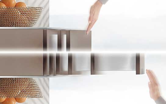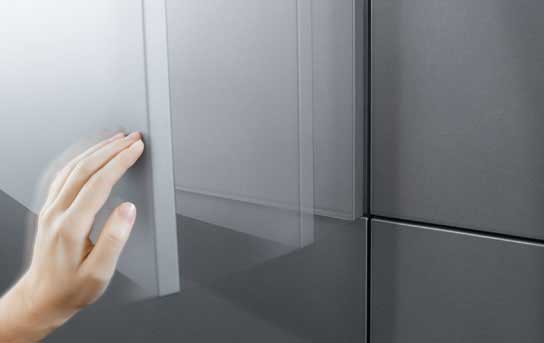 • Elegendő egy rövid érintés az előlapra, vagy a fogantyú könnyed meghúzása. A fiókok valamint kihúzók elektronikus rásegítéssel nyílnak.