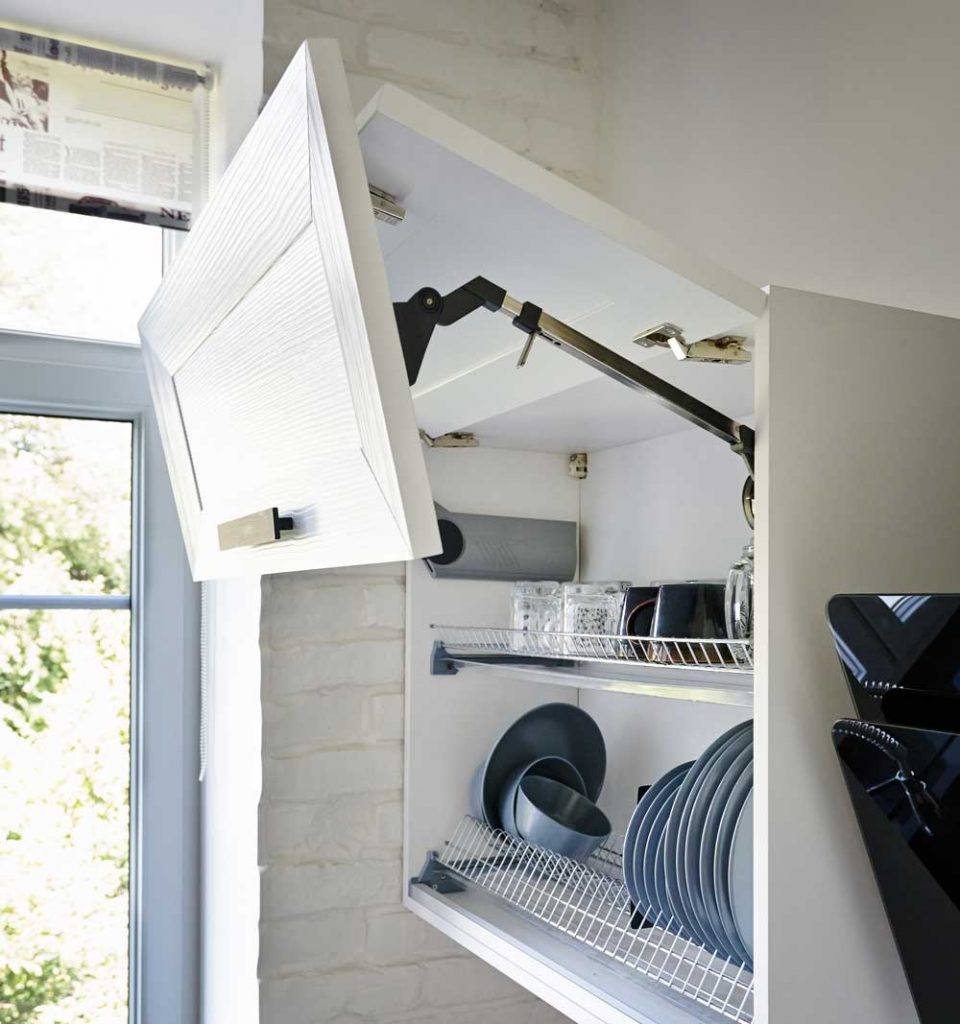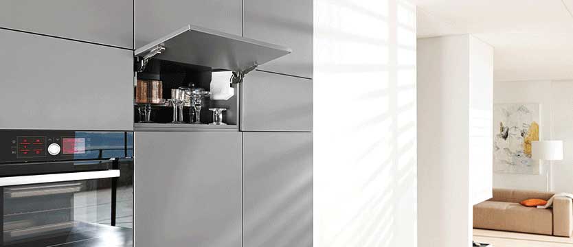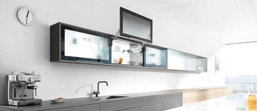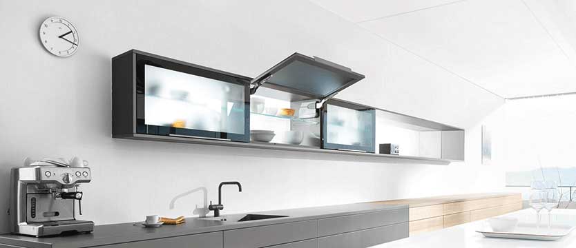 Az AVENTOS HL vasalat a különleges beépítési helyzetekben is kiválóan megállja a helyét, pl. a felsőszekrénybe való elektromos eszközök beszerelésekor.