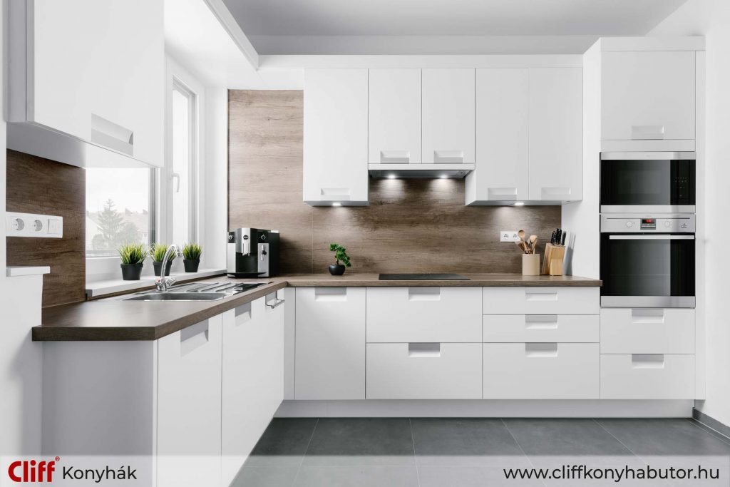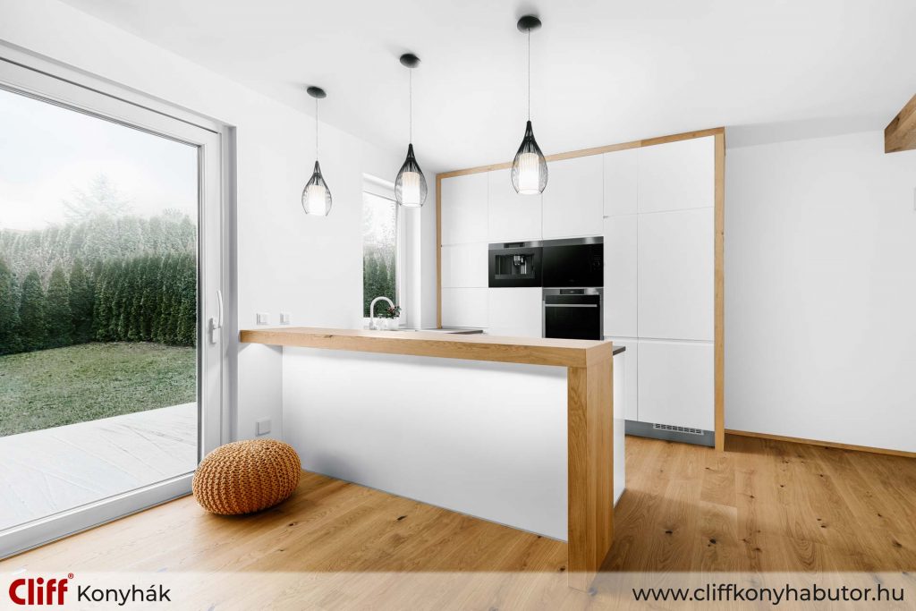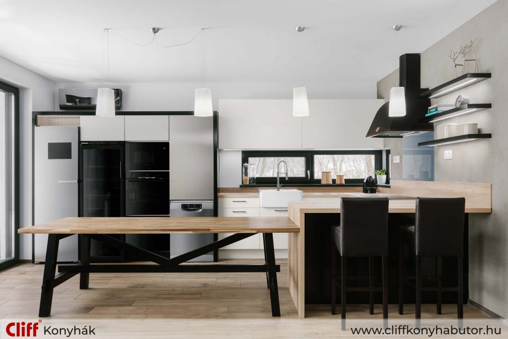 Carmel modern konyhabútor– Modern álomkonyha képek A fahatású felületek és a modern ipari stílus összhangja otthonos és letisztult teret hoz létre. Tervezéskor gondosan ügyeltünk, hogy a selyemfényű törtfehér, fém és fekete színvilágú konyhabútor a kőburkolattal, a fahatású dekoros pulttal és a tapaszolt sötét fallal közösen harmóniát alkosson, egyúttal erősítve a modern konyhák által képviselt letisztult …
