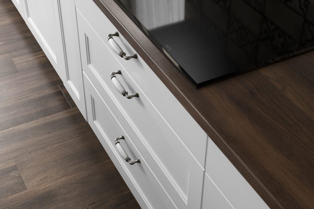 A húzógombbal kapcsolatban egy igazi klasszikus porcelán fogantyúra esett a választás, így méginkább kihangsúlyozva a vintage stílusirányzatot.