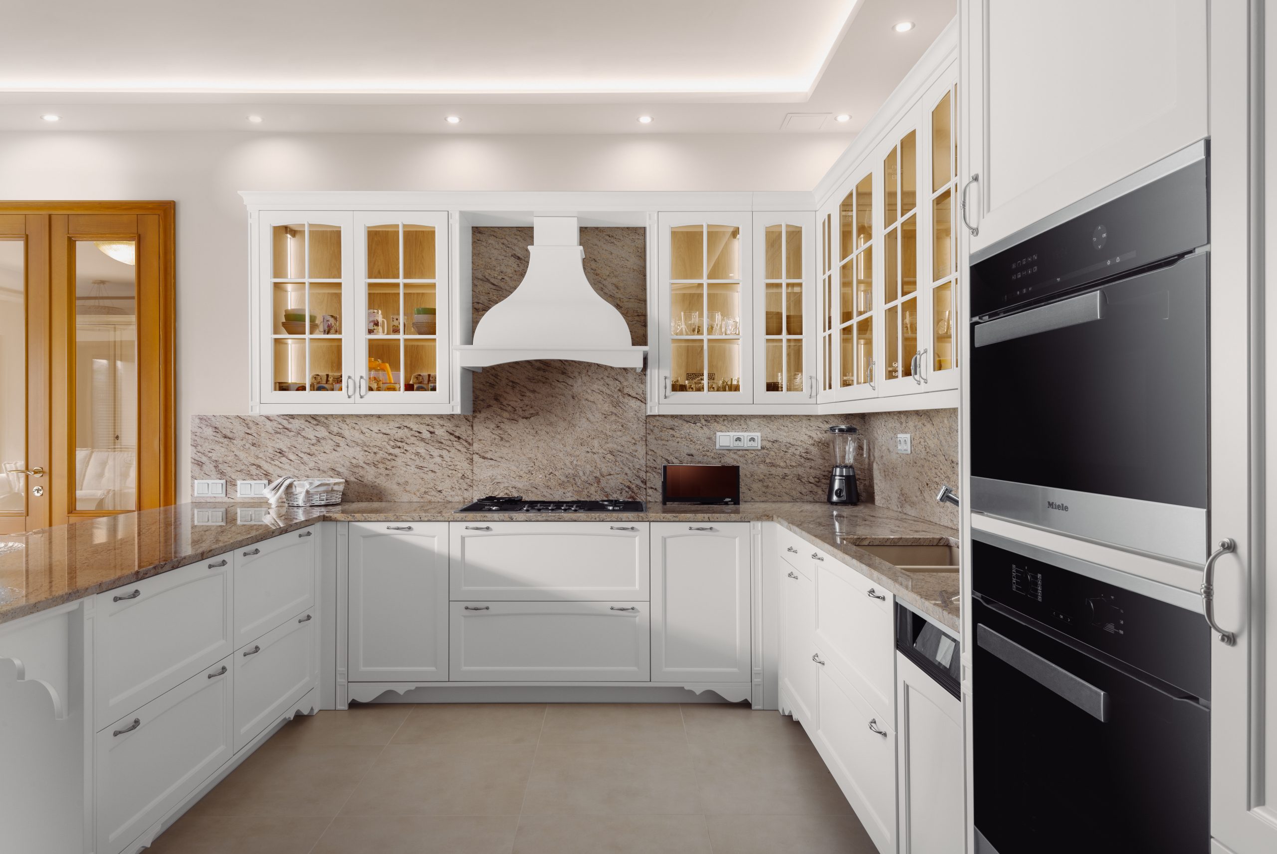 Die Säulen und dekorativen Beine, die die Küchenmöbel schmücken, tragen dazu bei.